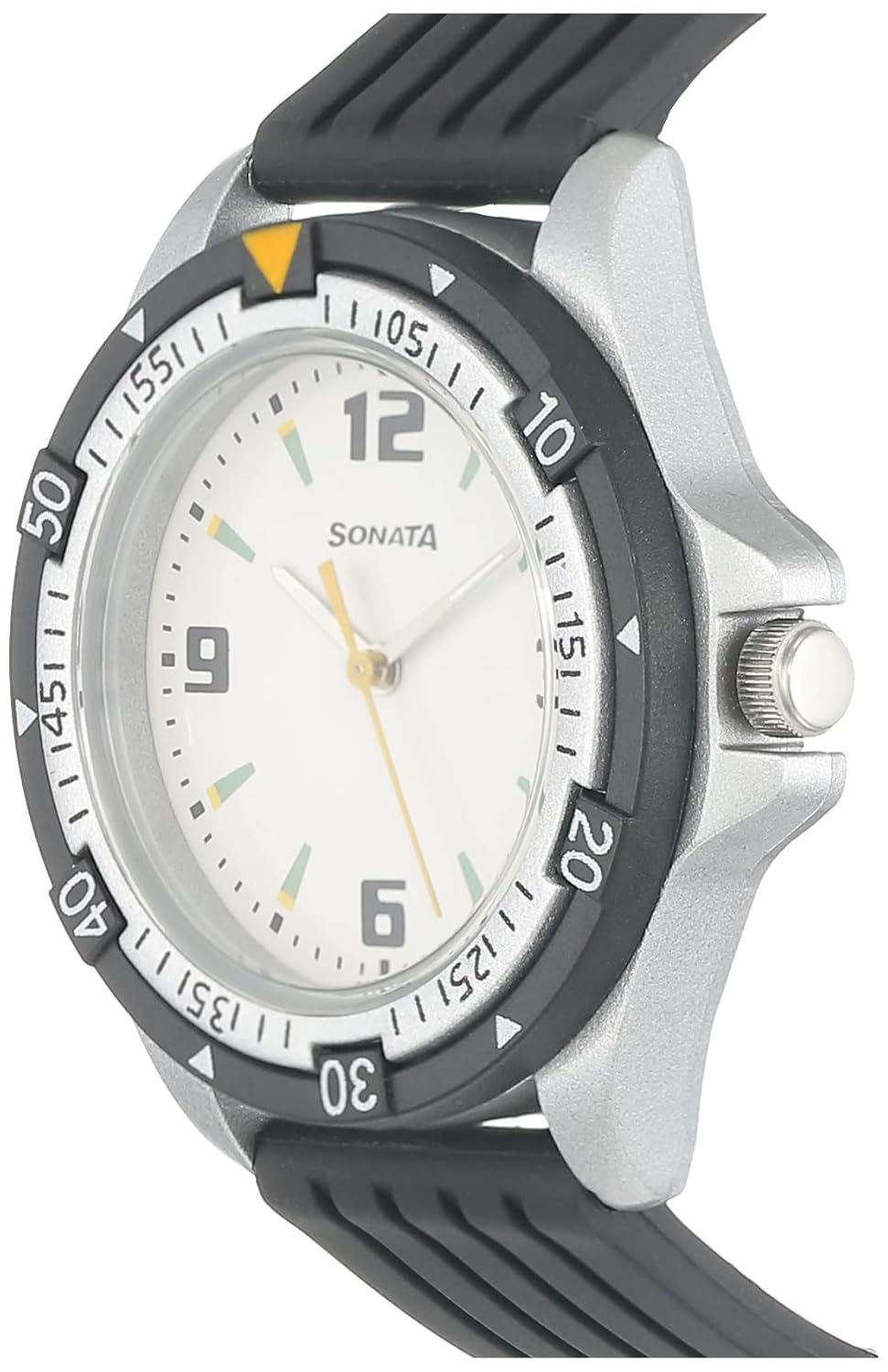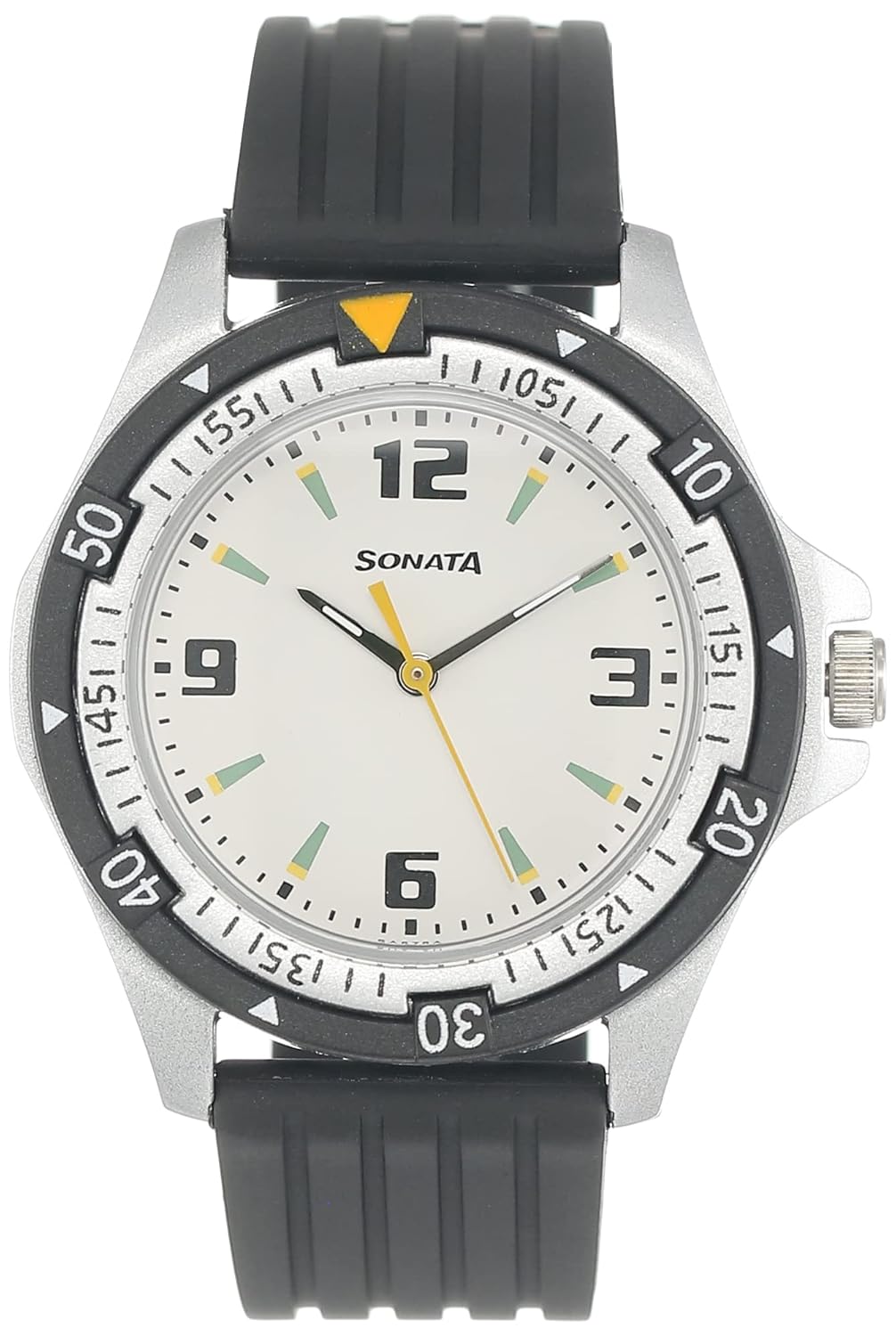 Gear up for adventure with this robust and sporty timepiece, designed for the active man who embraces a dynamic lifestyle. Its clear white dial offers crisp readability, featuring bold numerical markers and a practical black rotating bezel for enhanced functionality. Complementing this assertive face, the durable black plastic strap ensures a comfortable, secure fit and exudes an undeniable aura of sporty dynamism. Engineered with reliable quartz movement for precise time and built for everyday adventures, this watch is an indispensable companion for every challenge, blending robust design with essential utility.