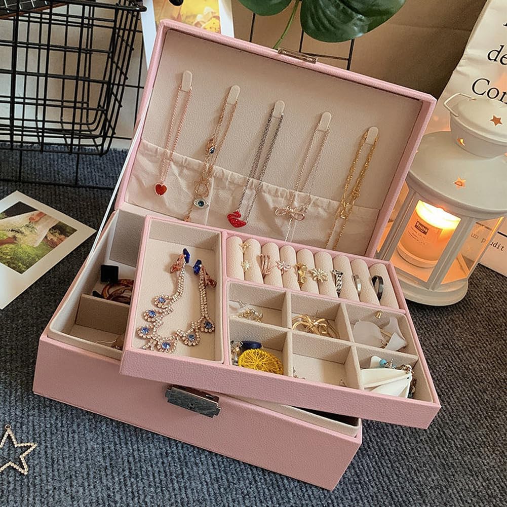Shining Diva Fashion Jewellery Organisers Box PU Leather Storage Case for Rings, Earrings, Necklace Jewelry Organizer for Women Travel