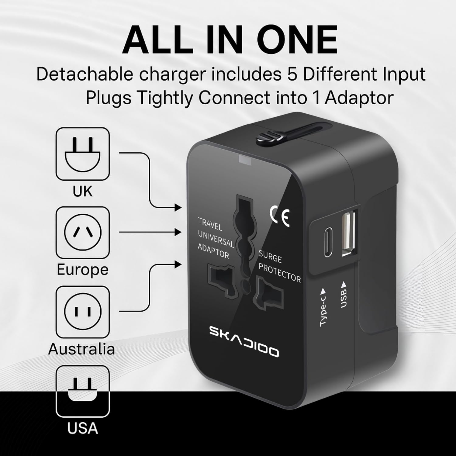 Be the first to review “SKADIOO International Travel Adapter | Universal Charger Adapter with Dual USB Port | 100-250V Multi Plug for Worldwide Travel | Compact All-in-One Power Converter”