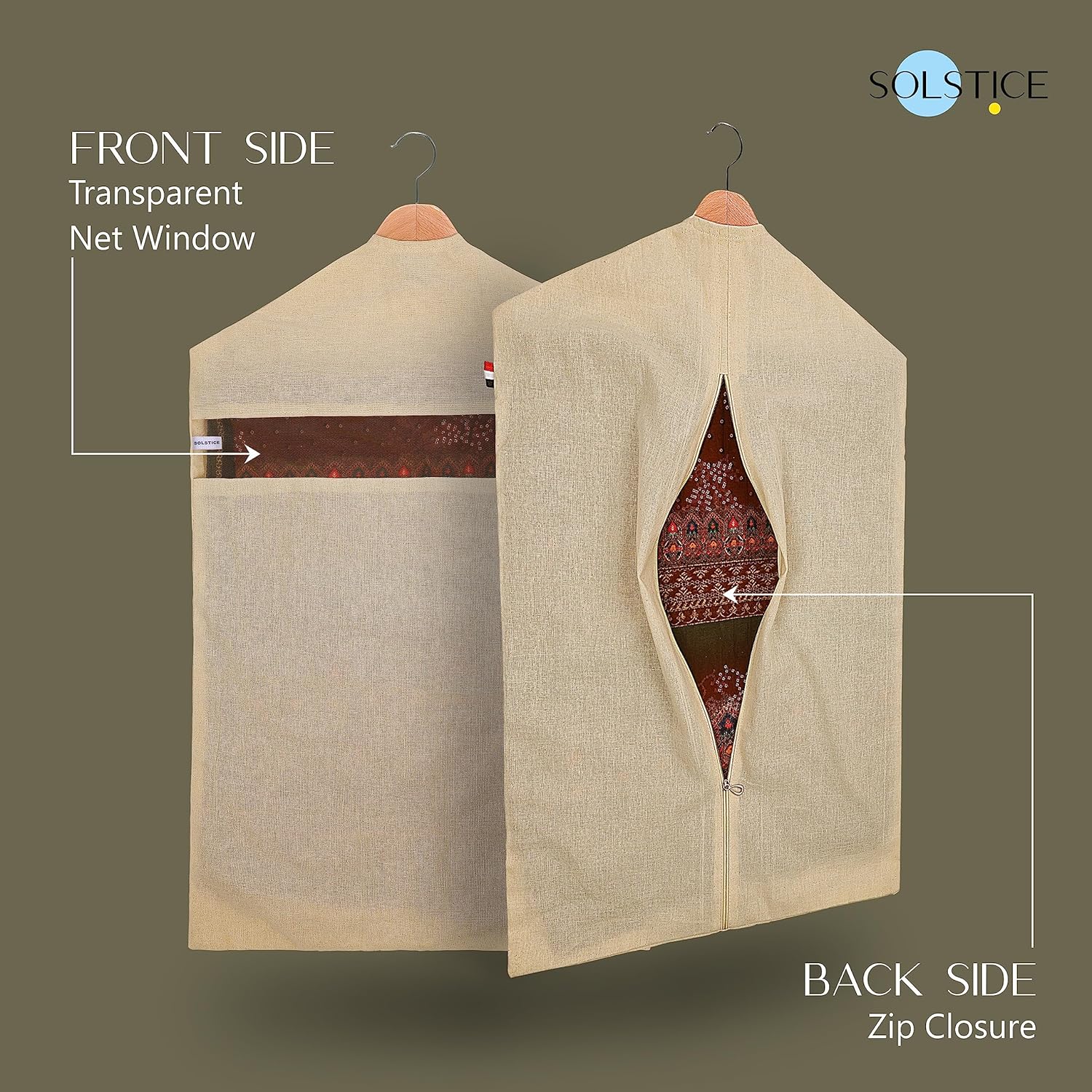 Clear & Convenient The transparent front panel with zip makes it easy to view contents without opening. Ideal for quick access and organized wardrobes, especially with saree hanging covers with zip.