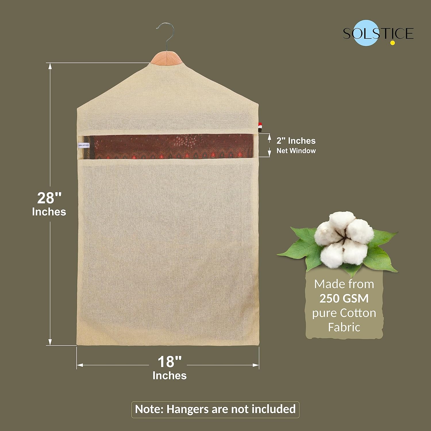 Be the first to review “SOLSTICE Hanging Cotton Saree Covers/Bags of 30 x 18 (Inches) For Clothes Storage, Wardrobe Organizer (Hangers Are NOT Included) (Single Pocket – Pack of 6)”