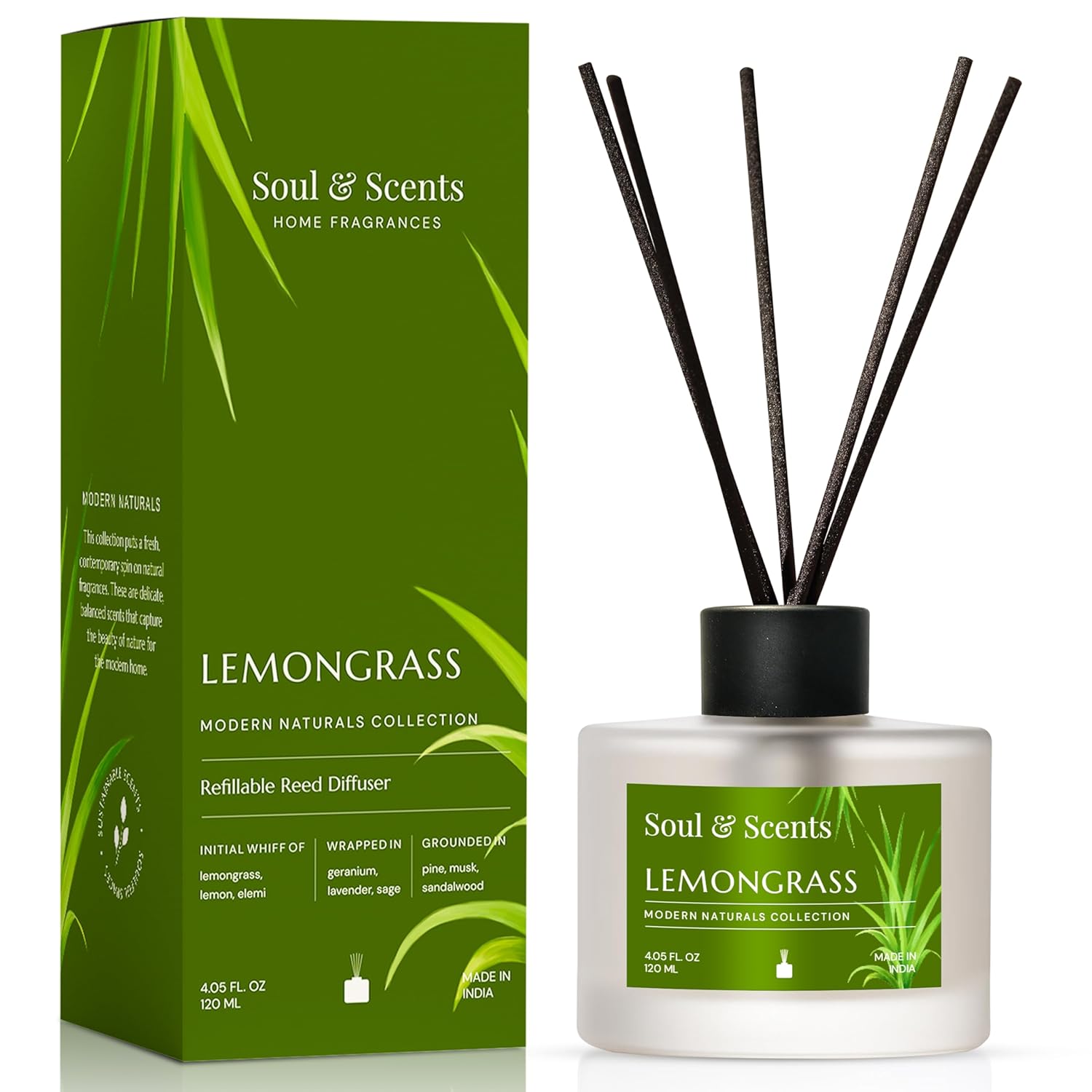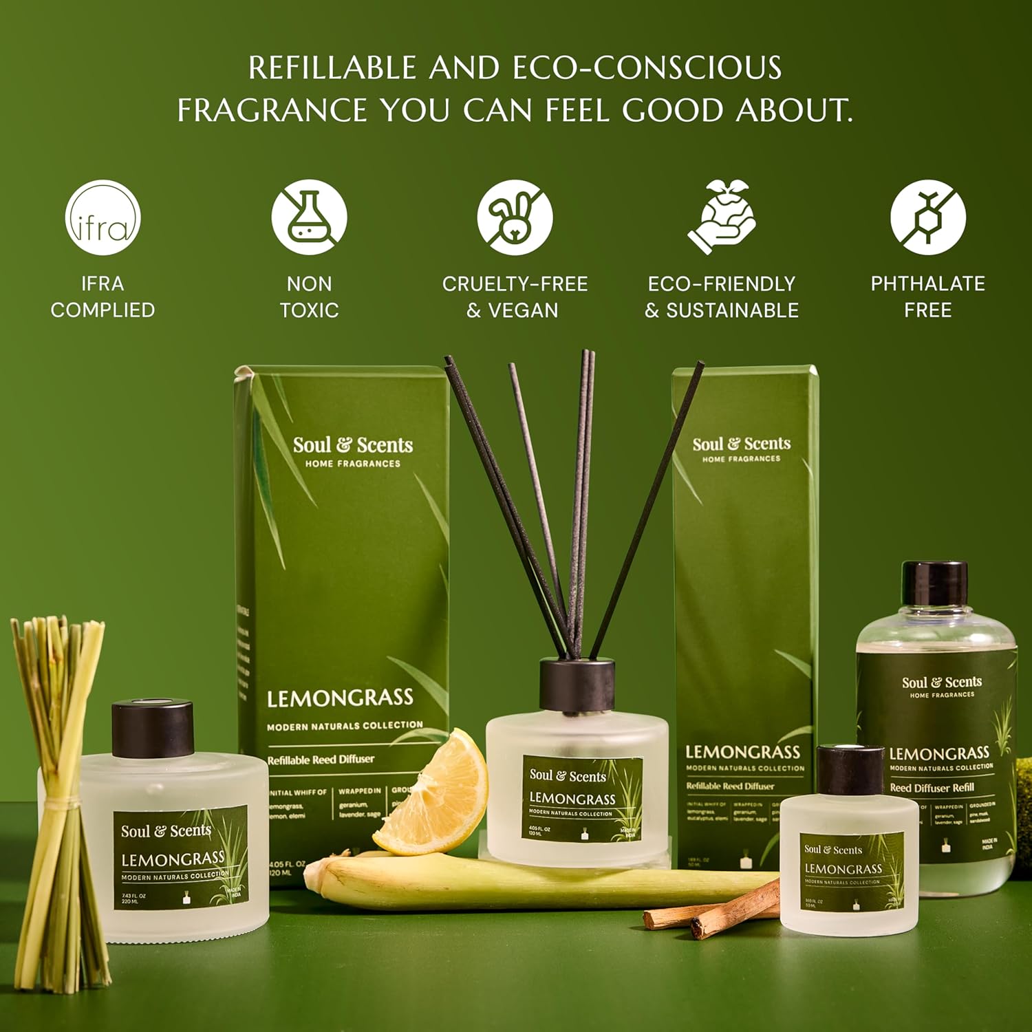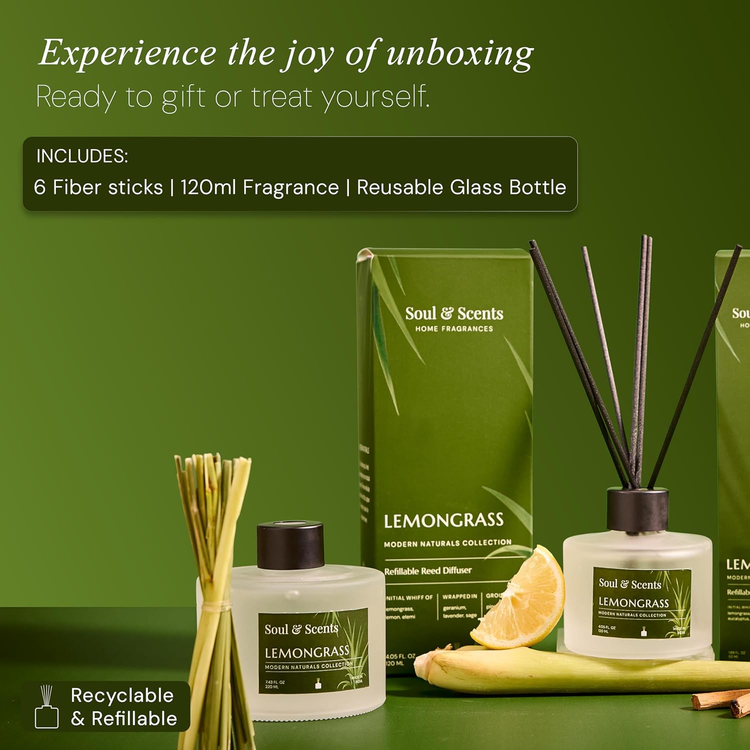 Sophisticated Lemongrass Blend: Experience the refreshing and uplifting aroma of the Lemongrass Reed Diffuser Set, designed to create a serene and invigorating atmosphere in your home, bedroom, and working space.