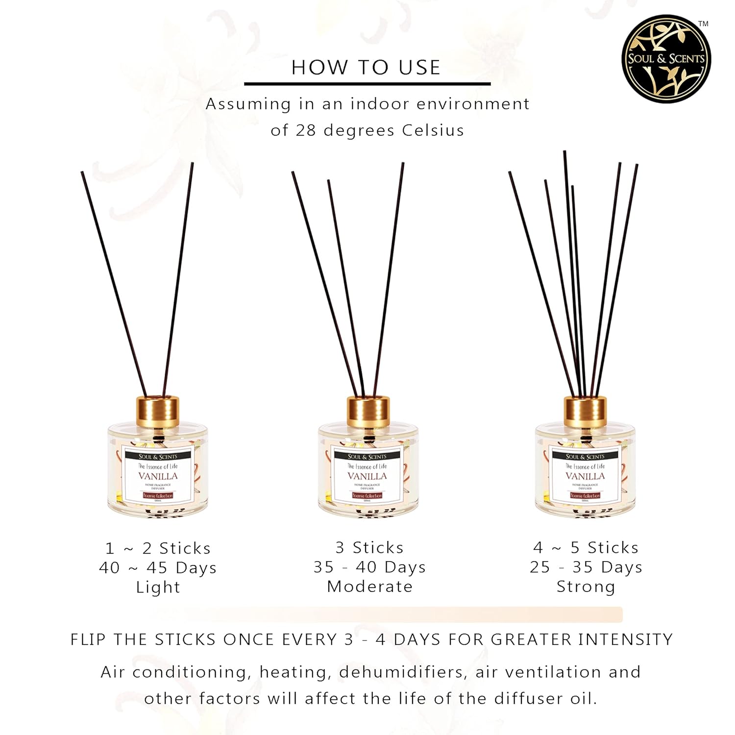 Easy to Use: The diffuser is user-friendly—simply remove the cap and plastic plug, insert the reed sticks, and adjust the quantity to achieve your preferred level of fragrance intensity.