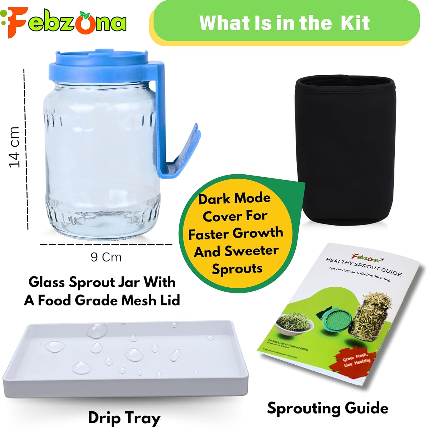 GROW HEALTHY GREEN SPROUTS EASILY- Design is registered in IP India, Febzona Sprouting kits make it easy to grow a variety of fresh, healthy sprouts right in your kitchen Ideal for adding nutritious, crunchy greens to soups, salads and sandwiches. This kit makes sprouting not just a health choice but a fun hobby. Plus, it’s an affordable way to enhance your health with fresh diet.
