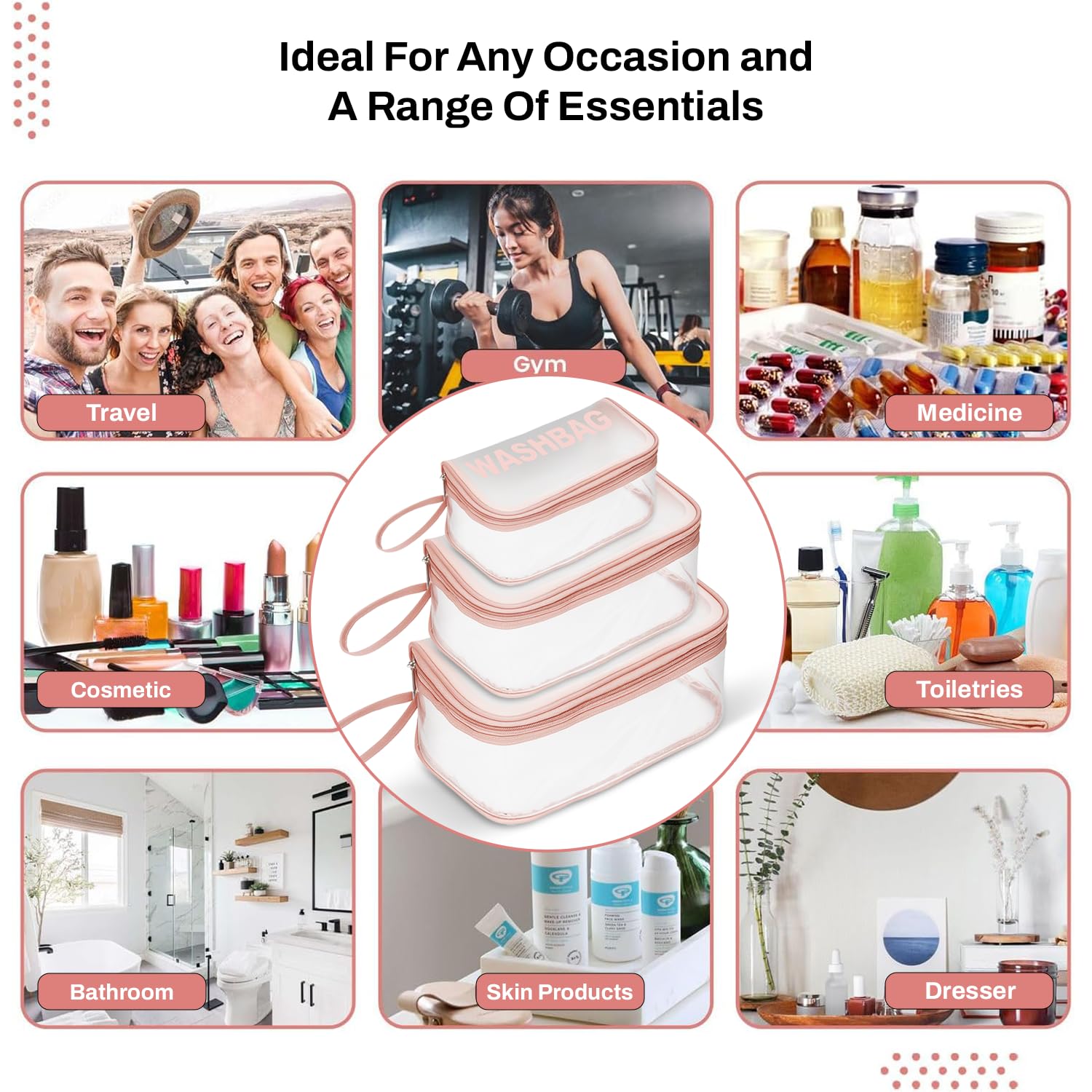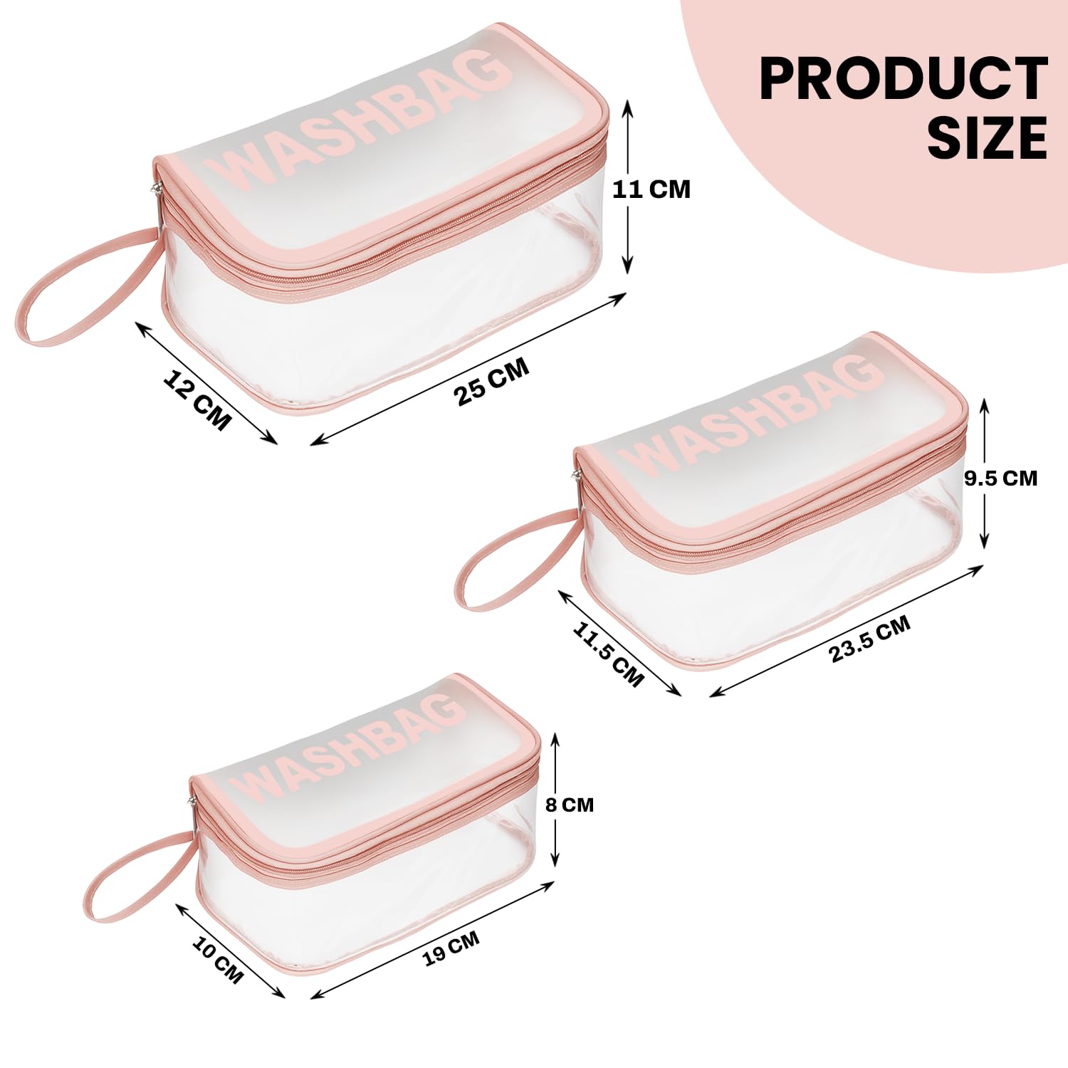 3-Piece Multipurpose Set – Includes three transparent PVC pouches, perfect for cosmetics, toiletries, stationery, or travel items.