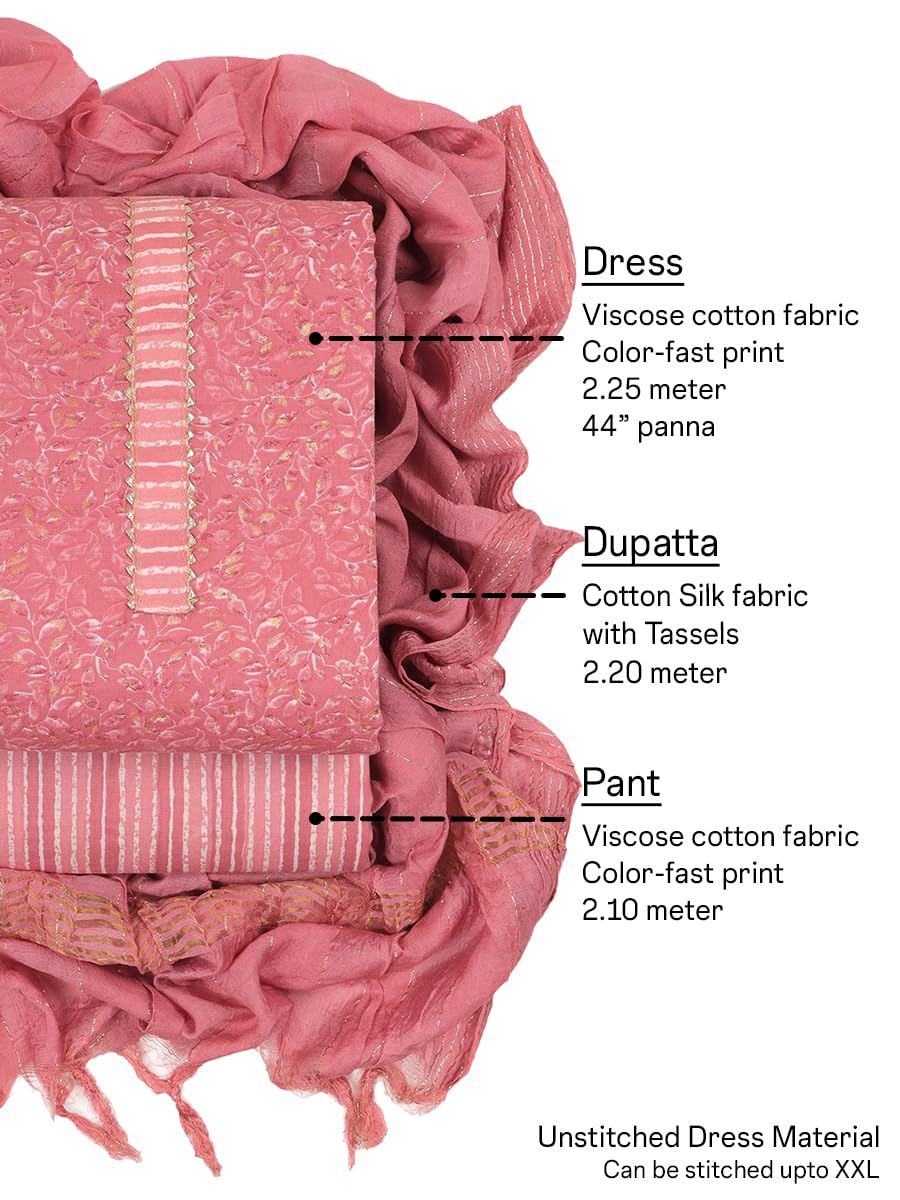 Sun Fashion and Lifestyle unstitched cotton dress material for women with dupatta. Viscose cotton suit, salwar and dupatta. Allover print. Color fast print