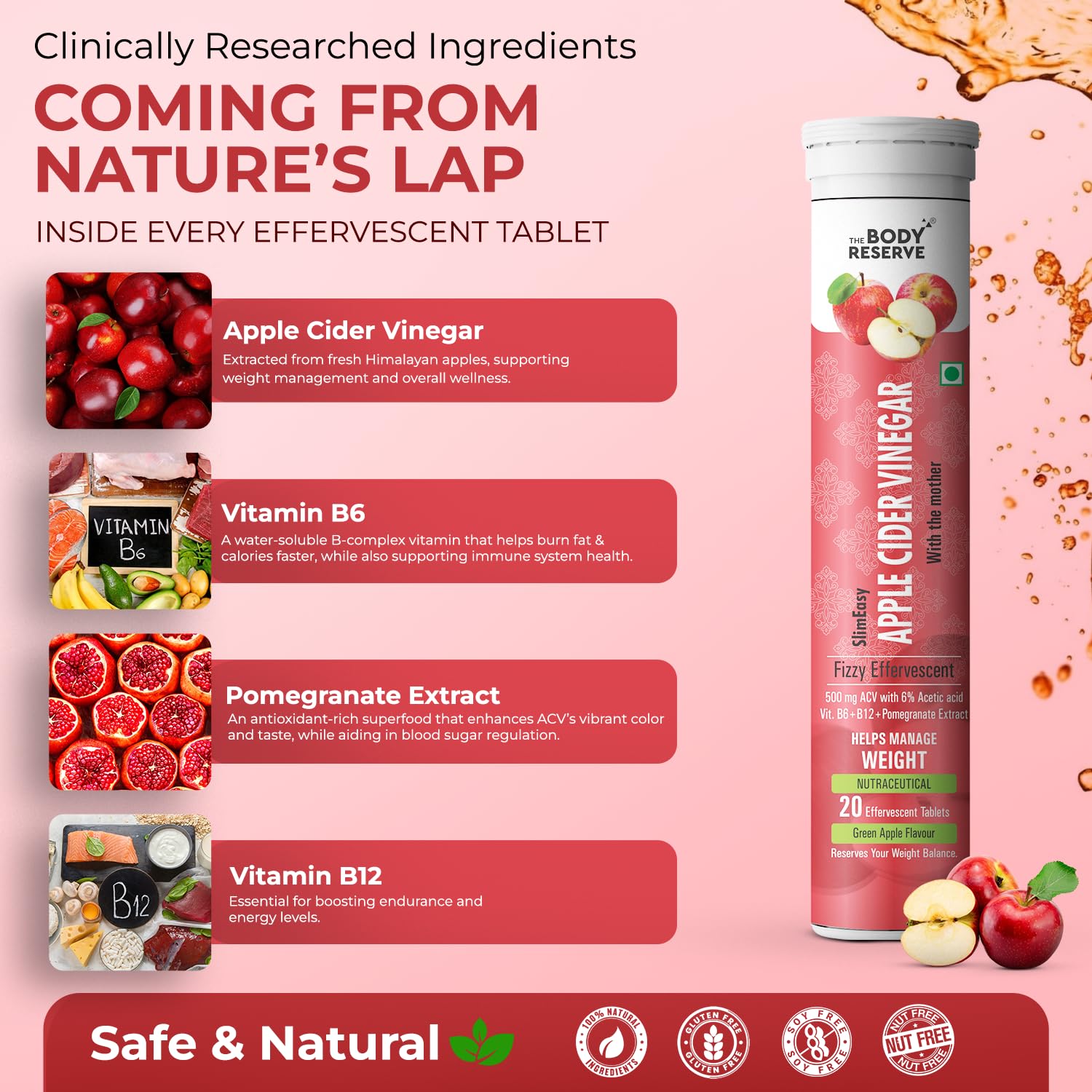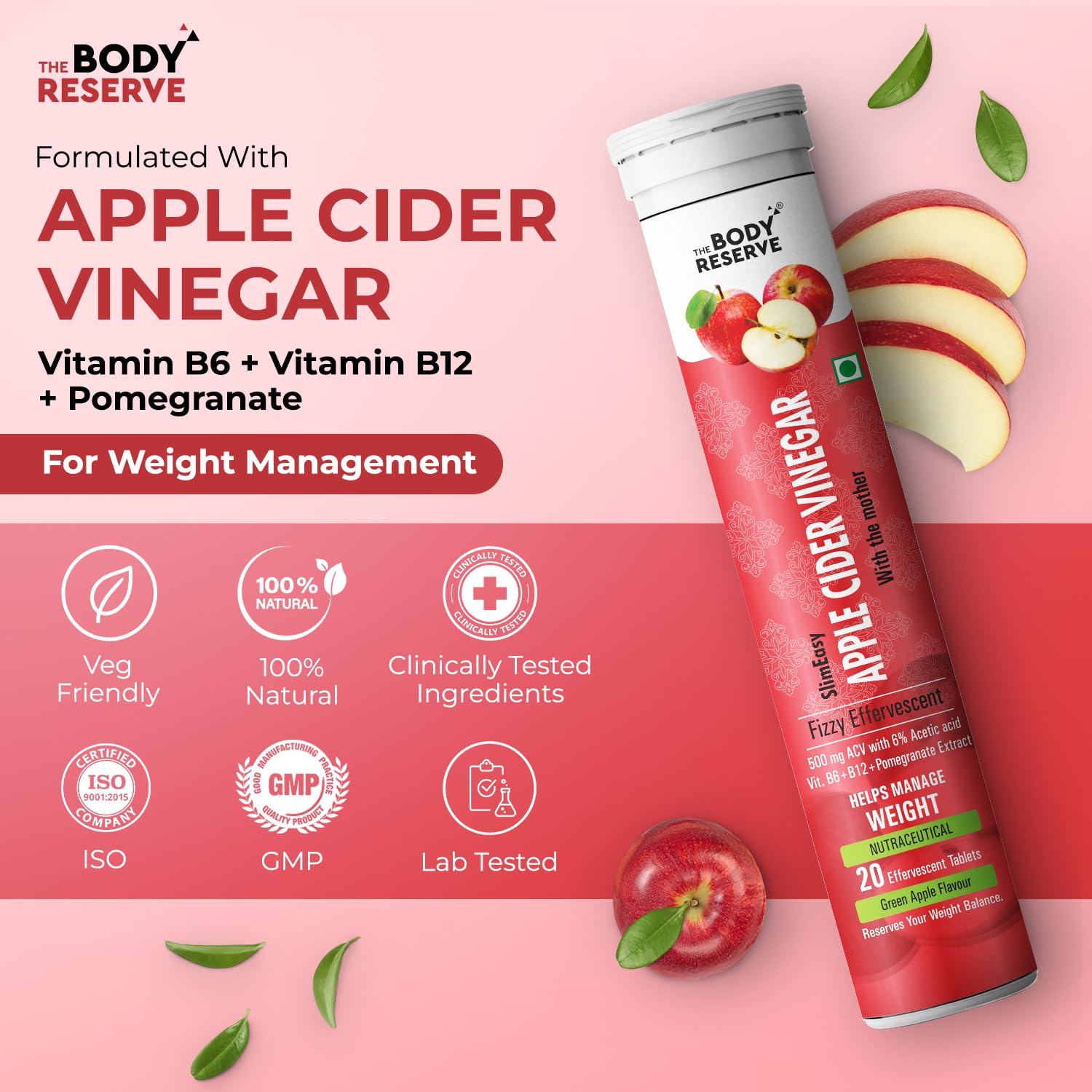 The Body Reserve Apple Cider Vinegar | 40 Effervescent Tablets, Pack Of 6 (Apple Flavour)