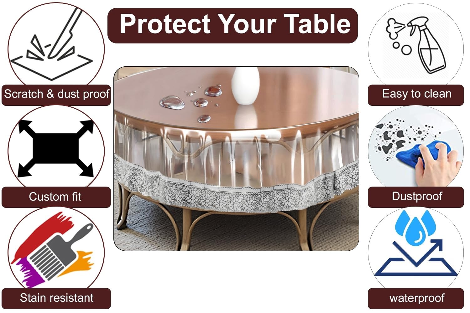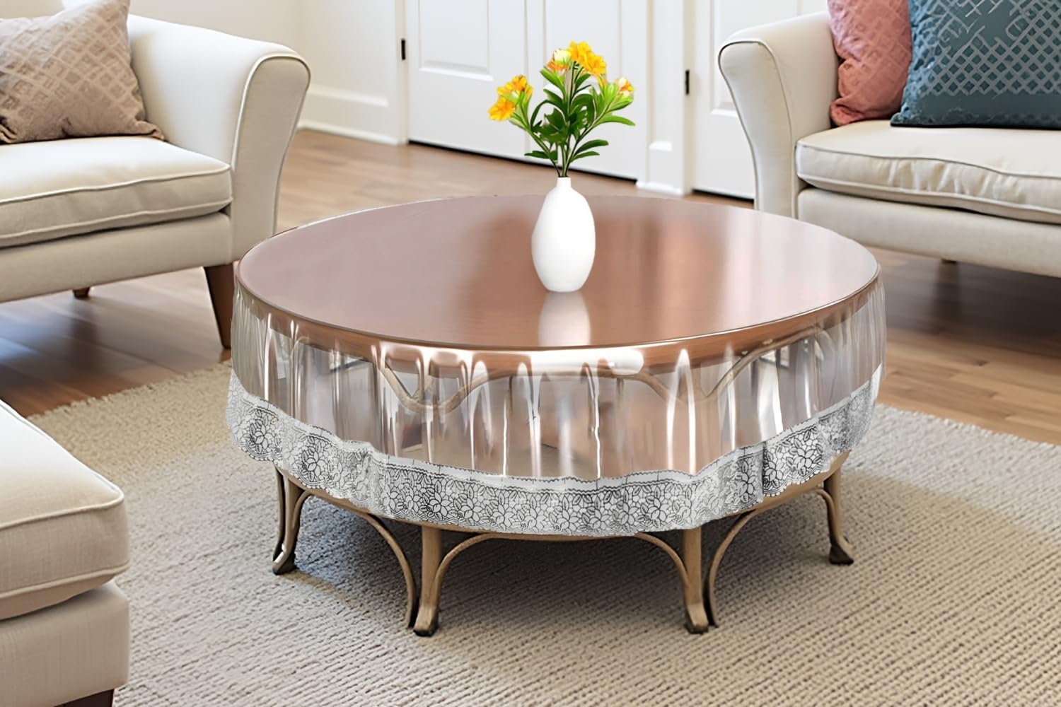 We understand the lifestyle of our customers and to enhance the beauty of your drawing room/Dining room, we have created some wonderful Table Covers, crafted out using high grade quality PVC Clear (Transparent) material which makes them durable, the 3 dimensional pebbles make it even more awestruck, transparent table cover enhences the beauty of table and also protects from dust, stain and other possible mishaps, these table covers are easy to wipe & clean, It also protects your table surface, no more stains on your table, Made In INDIA. The folding marks occured due to packaging will be gone in a day or two just start using as it is.