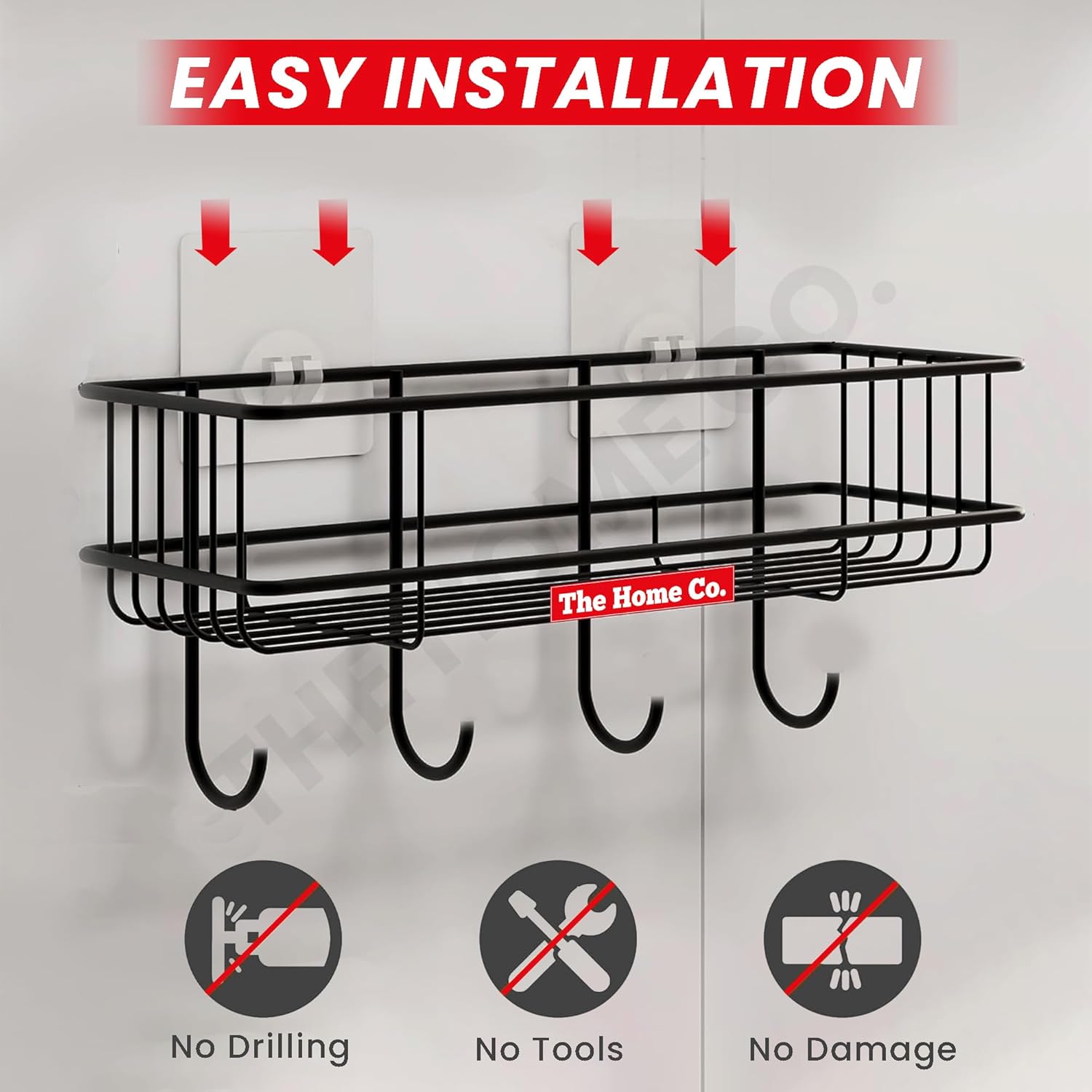 Be the first to review “The Home Co. No Drilling Self Adhesive Bathroom Shelf with 4 Hooks/Rack Organizer/Kitchen Shelf with Magic Stickers – Pack of 2 (Black, Powder Coated)”