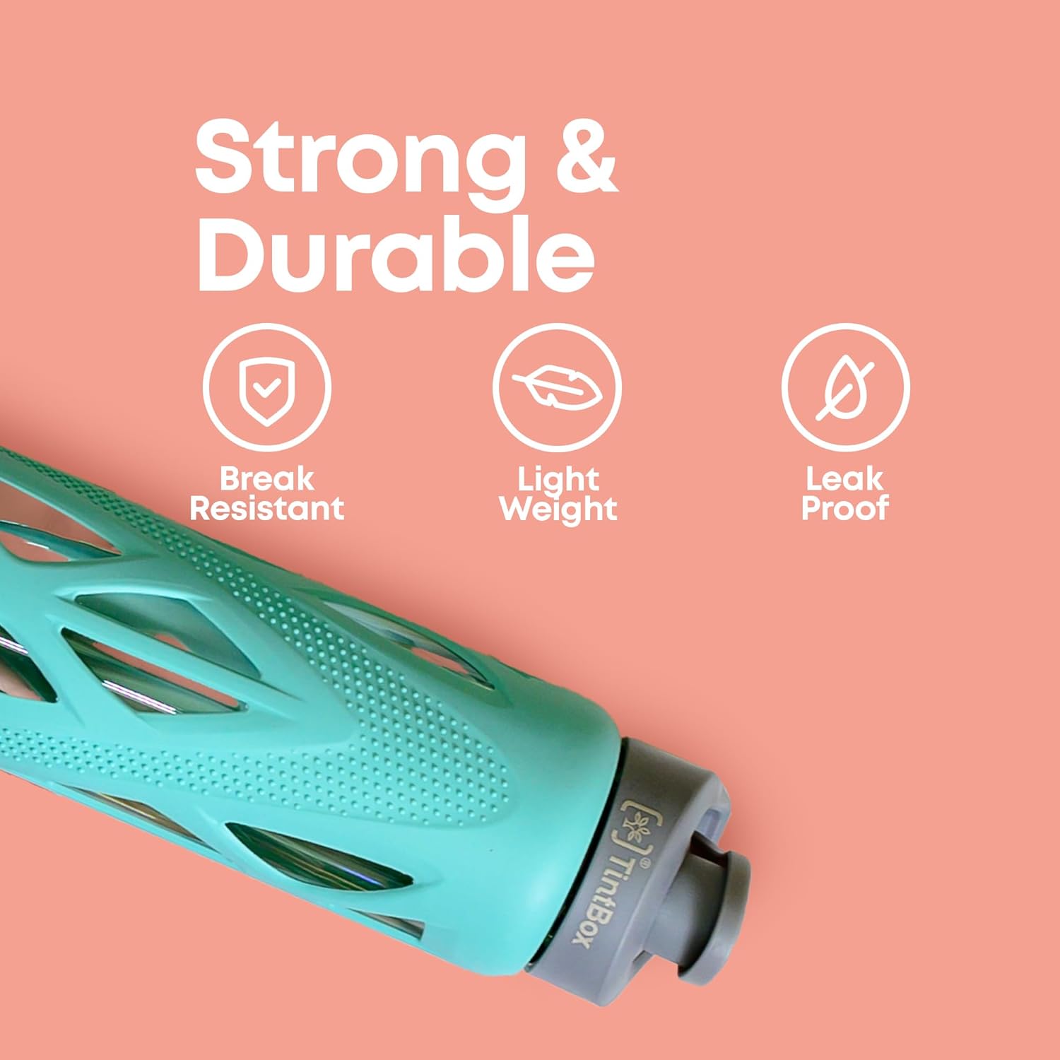 THE GLASS CONFIDENCE – TintBox water bottles are very strong, durable yet light and travels in style to office, gym, workplace, car, camping, hiking, or wherever you go without hassles of leakage or breakage. High Borosilicate glass which is the best quality of glass possible imparts properties like crystal clarity, scratch proof and the glass itself is the most resistant to breakage amongst all types of glass unlike toughened/ tempered or soda lime glass which are inferior qualities of glass.