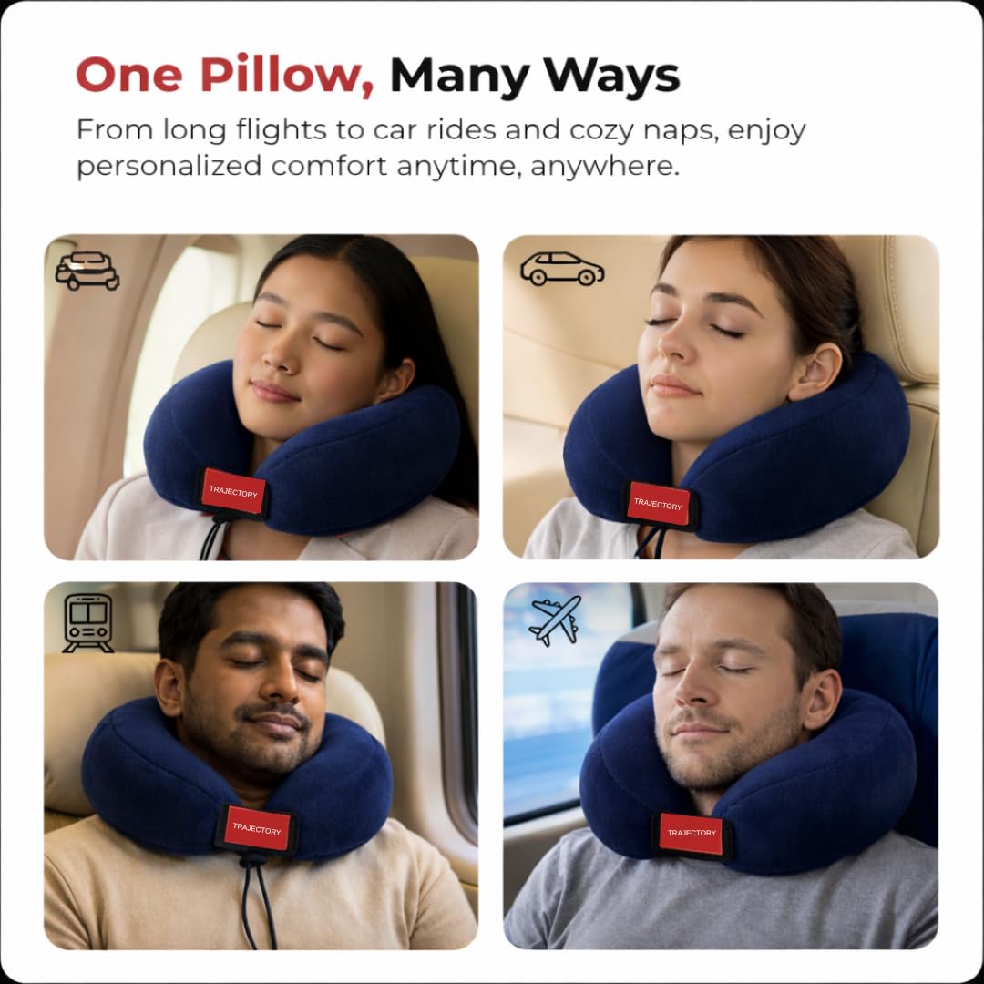 SHARK TANK FEATURED TRAVEL COMFORT SET – Trajectory, a Shark Tank–featured comfort brand, presents the ultimate travel neck pillow for airplane flights, cabs, cars, trains, buses, and home use. Designed for men, women, and frequent travelers seeking maximum comfort on the go.