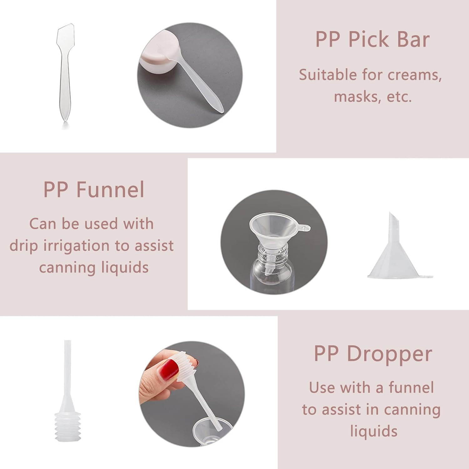 BPA-free material: Safe for storing liquids and cosmetics. Easy to refill: Comes with a funnel, dropper, and spatula for hassle-free refilling. Ideal for travel: Meets airline regulations for carry-on liquids