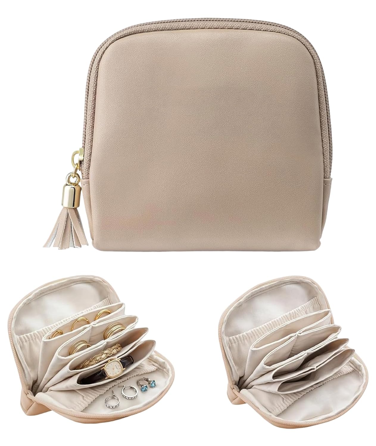 Travel Jewellery Organizer, Brown Jewellery Organiser Pouch with Zipper, Mini Pouch for Rings, Bracelets & Necklaces, Compact Multipurpose Accessory Pouch for Travelers, Professionals & Jewelry Lovers Compact Travel Jewellery Organizer: This mini pouch is designed for easy travel and use; Its slim profile fits into handbags, backpacks, or luggage, making it ideal for frequent travelers and organized professionals Secure Jewellery Pouch with Zipper: Features a durable zipper closure to keep your jewellery and small accessories safe; The interior is designed to prevent tangling, ensuring your rings, bracelets, and necklaces stay organized and protected Multi-Functional Jewellery Organiser Pouch: Not just for jewellery, this pouch can also hold cosmetics, coins, or other small items; Its versatile design makes it a ideal gift for jewellery enthusiasts and gift shoppers Durable Small Pouch for Travel: Made from high-quality material, this jewellery pouch is built to last; The sturdy construction ensures it can withstand daily use and travel, providing reliable storage for your valuables Jewellery Travel Organizer: A must-have for anyone who loves to travel or needs a compact solution for jewellery organization; This pouch is perfect for keeping your accessories tidy and accessible wherever you go