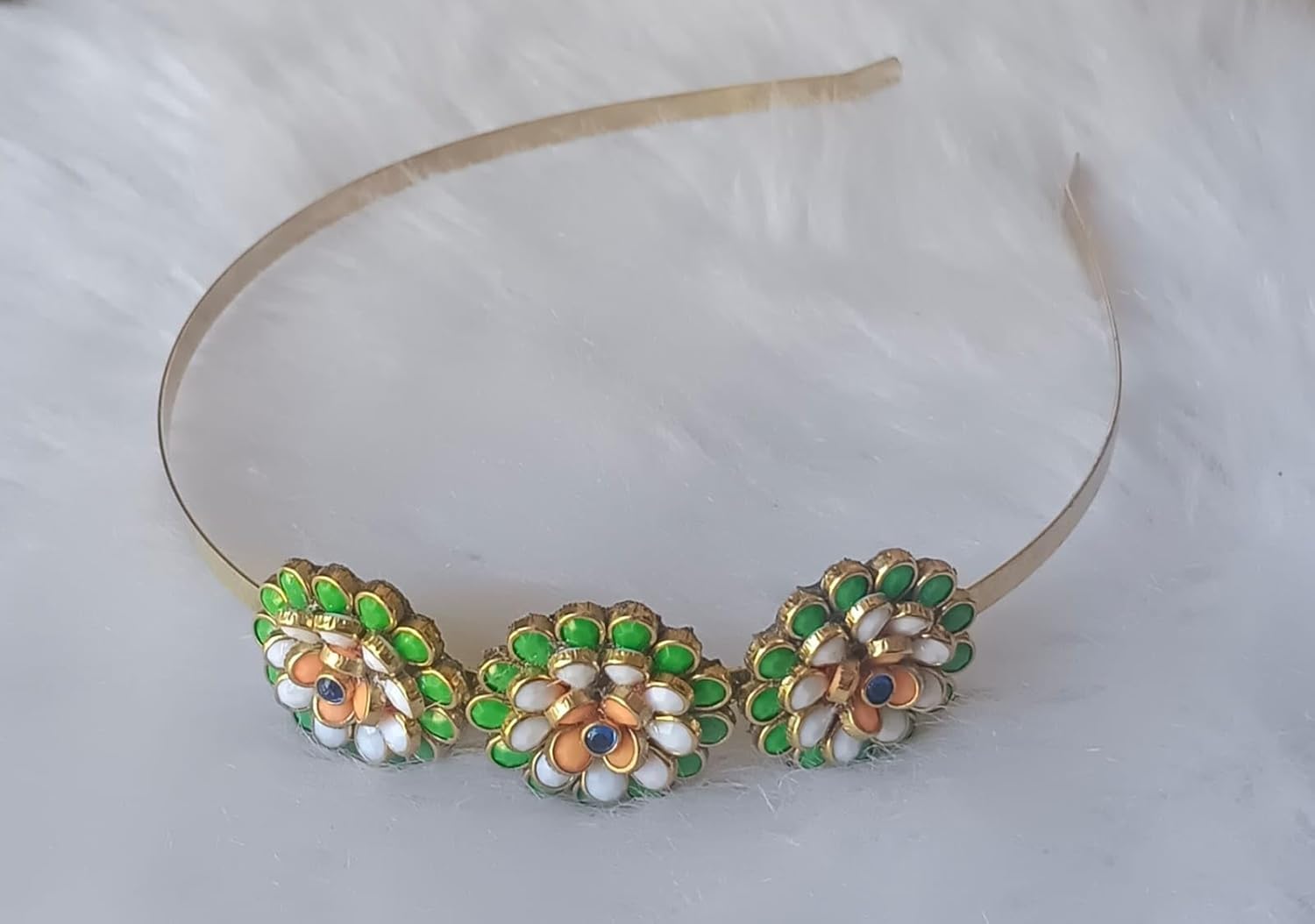 Tricolor kundan headband designed for women and girls, suitable for festive and daily wear.