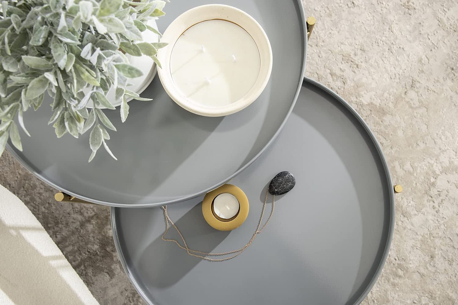 VERSATILE: These tables’ ingenious modern design looks fantastic next to the sofa in your living room, by your door in the entryway, or in your bathroom
