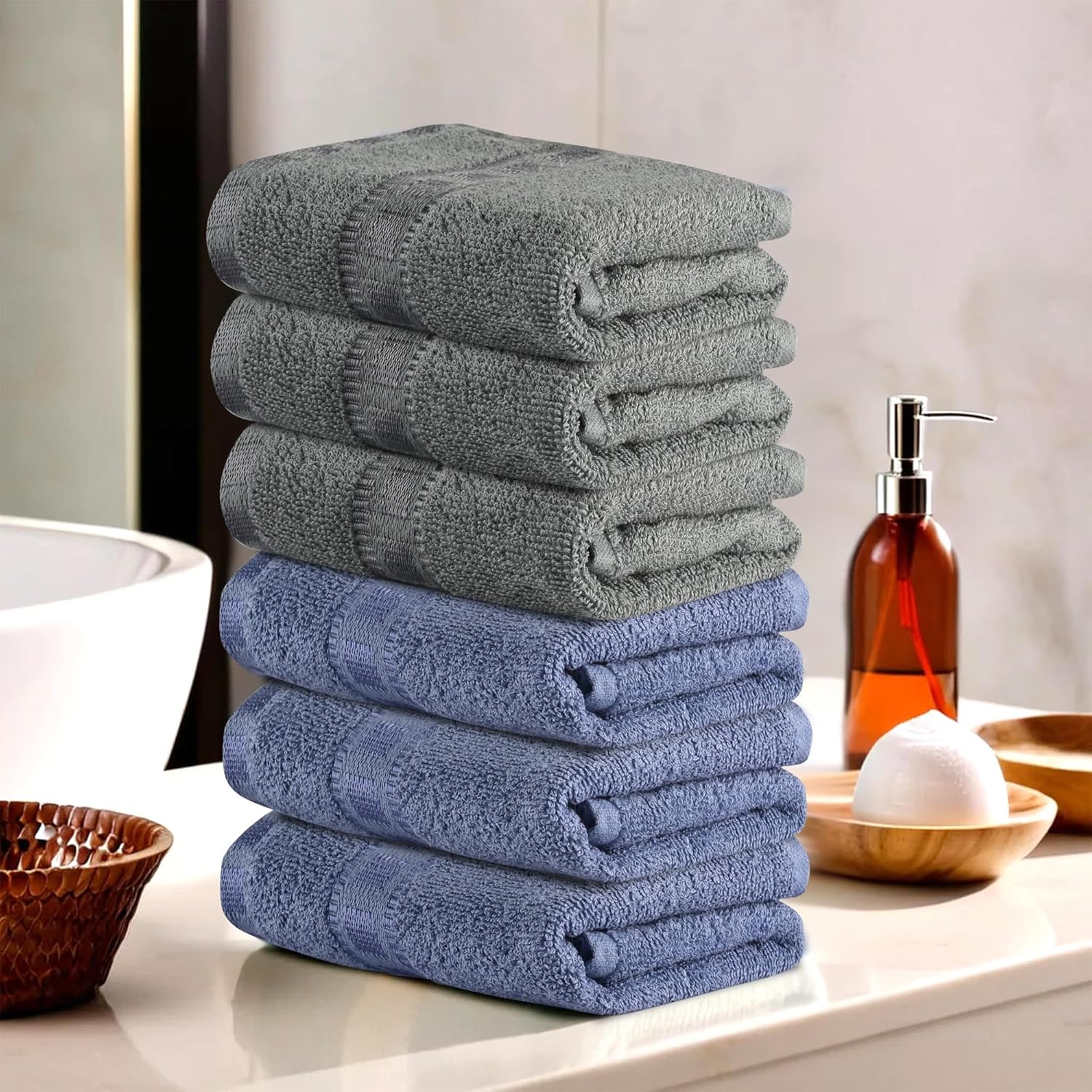 ✅ Package Contains – 6 Piece Face Towel | Check Border | Color – Dark Blue & Grey | Material – Cotton | Product Dimensions – 53 cm x 35 cm x 1 cm