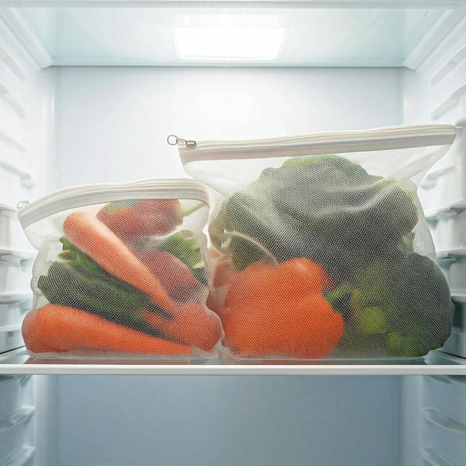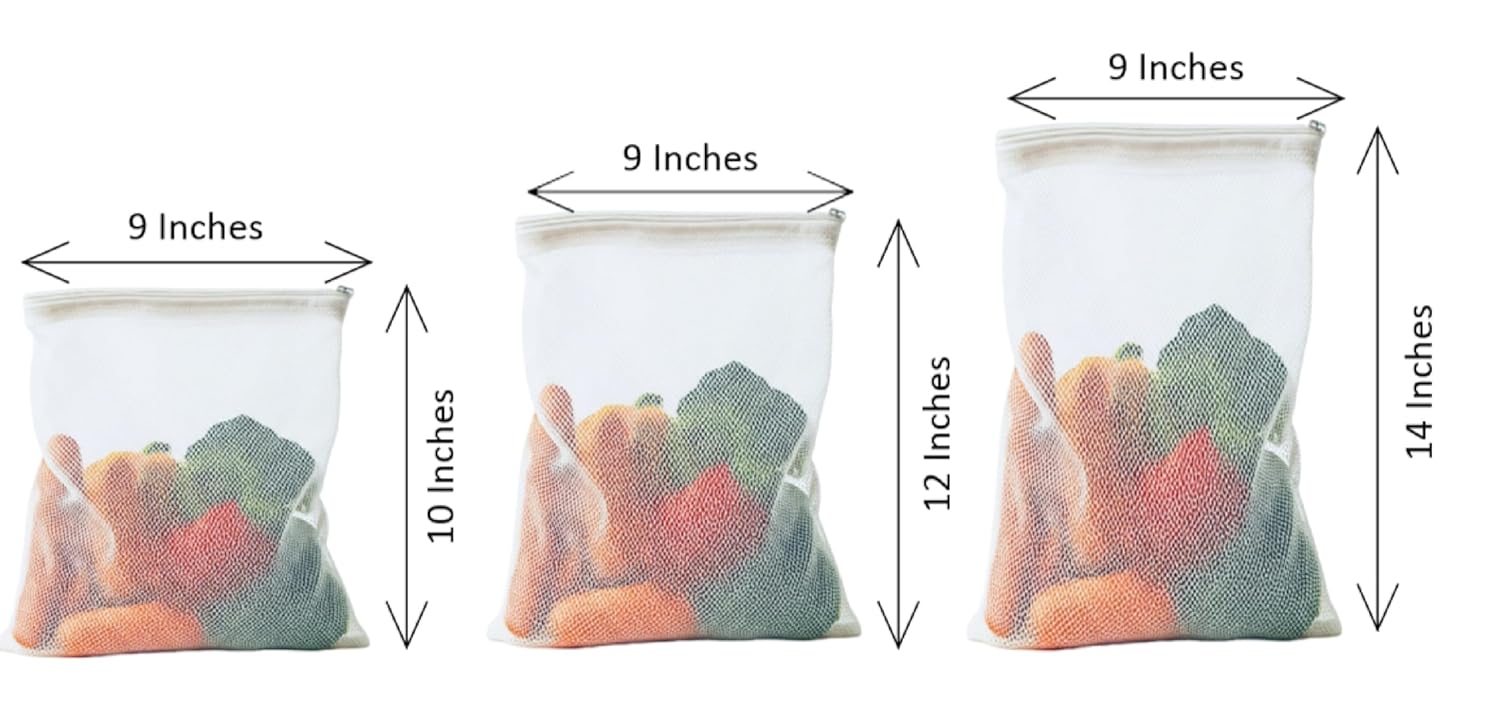 Multi-Purpose: Use the net bag for any purpose like storing veggies, fruits, toys, household items, travel items, shoes, socks, makeup, etc.Generous Storage Capacity: With its spacious design, this net bag provides ample room for various vegetables, accommodating everything from leafy greens to larger produce items. Keep your kitchen organized and your produce easily accessible.Durable and Reusable: Crafted from high-quality materials, this net bag is not only durable but also reusable, providing a sustainable alternative to single-use plastic bags.Rust Free ZipClosure: The practical zip closure ensures easy access to your vegetables while keeping them securely stored. Versatile Usage: Take our vegetable net bag with you to the grocery store, farmers’ market, or use it in your fridge and pantry. Its versatile design makes it a go-to solution for various storage needs, promoting a more organized and eco-conscious lifestyle.