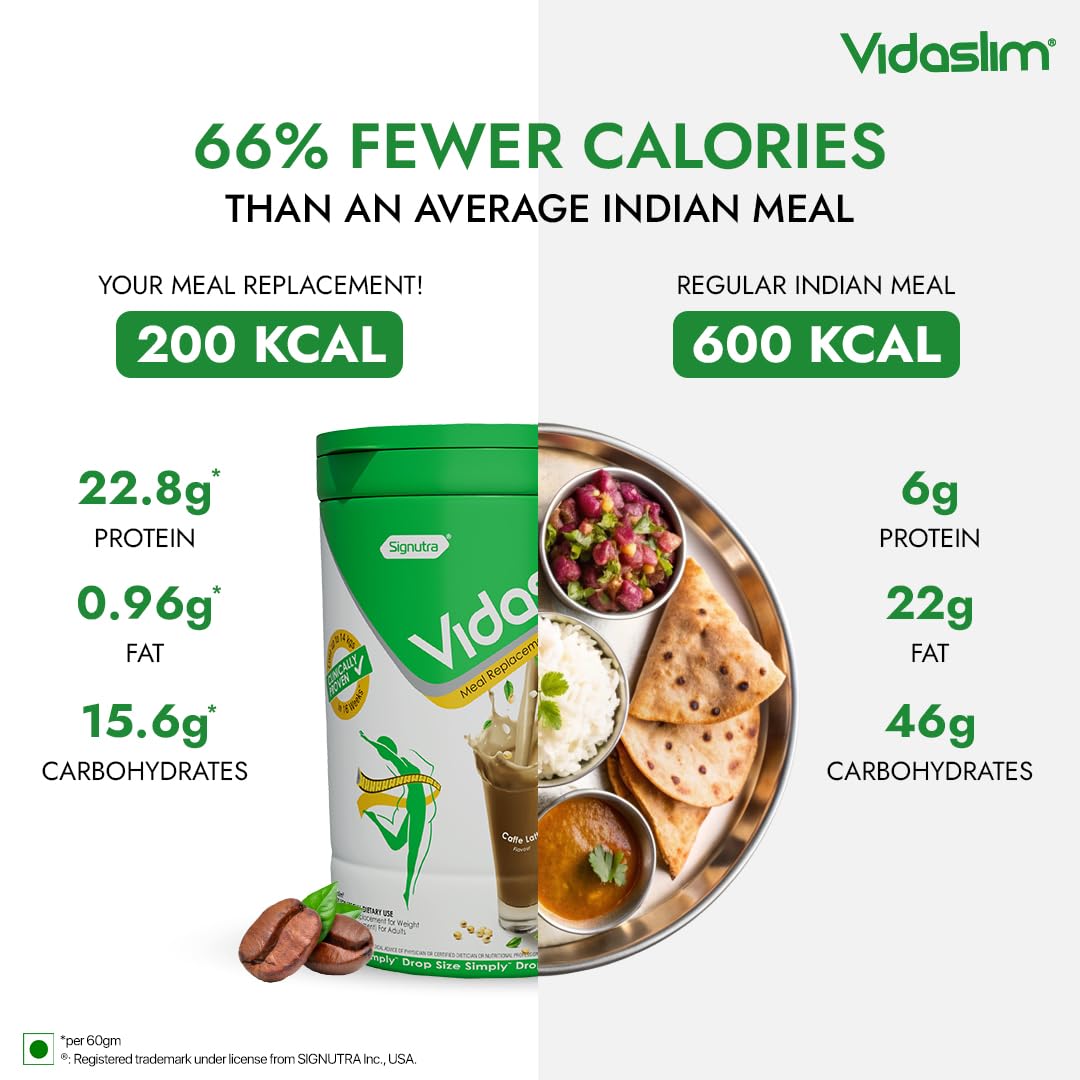 COMPREHENSIVE MEAL REPLACEMENT FOR WEIGHT CONTROL Vidaslim Meal Replacement Protein Shake offers a clinically proven, nutritionally balanced approach to weight management. Designed with 38 key nutrients including essential vitamins and minerals to meet your body’s needs while reducing calorie intake. Each serving of Vidaslim provides 22.8g of protein, a high-fiber blend, and essential vitamins and minerals, making it an effective solution for Weight control and Management