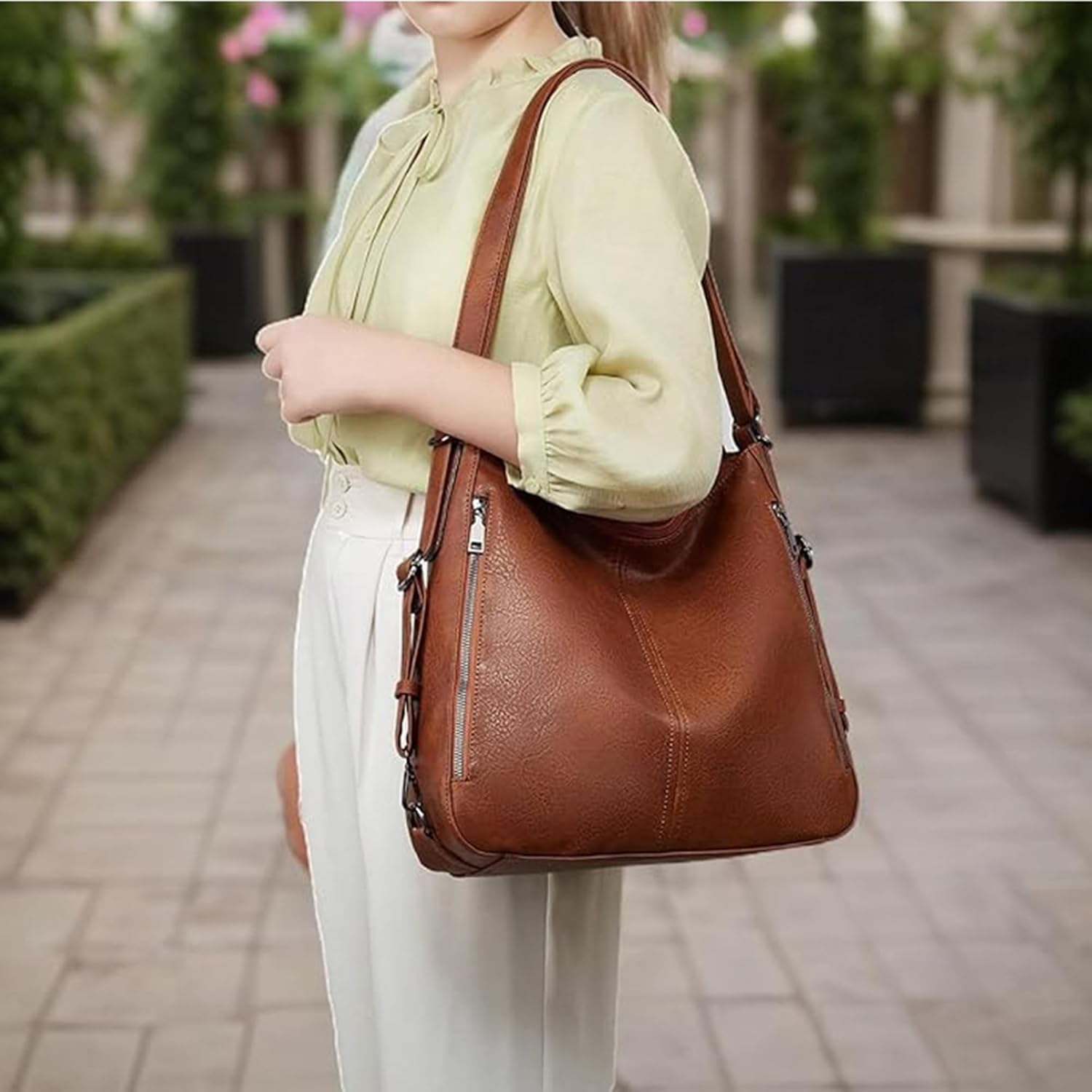 Womanix Faux Leather Hobo Shoulder Bag, Large Capacity Backpack, Cross Body Bag,Side Zipper Design For Daily use Office, Travel
