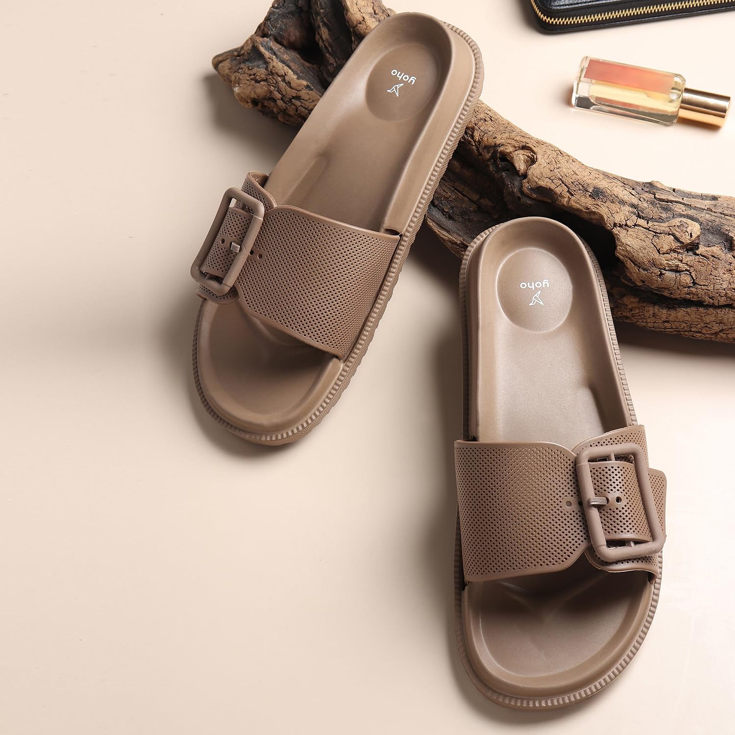 Step into vibrant comfort with Yoho Grape Sliders for Women. Crafted for women who embrace both function and flair, these sliders are more than just slides – they’re a lifestyle upgrade. These sliders transition seamlessly between indoor coziness and outdoor adventures, adapting effortlessly to any setting. Their lightweight construction minimizes foot fatigue, so you can keep moving without a second thought. And when life gets messy? Just a splash of soap and water, you’re good to go! Say goodbye to compromises and hello to a slider that’s reliable and chic.